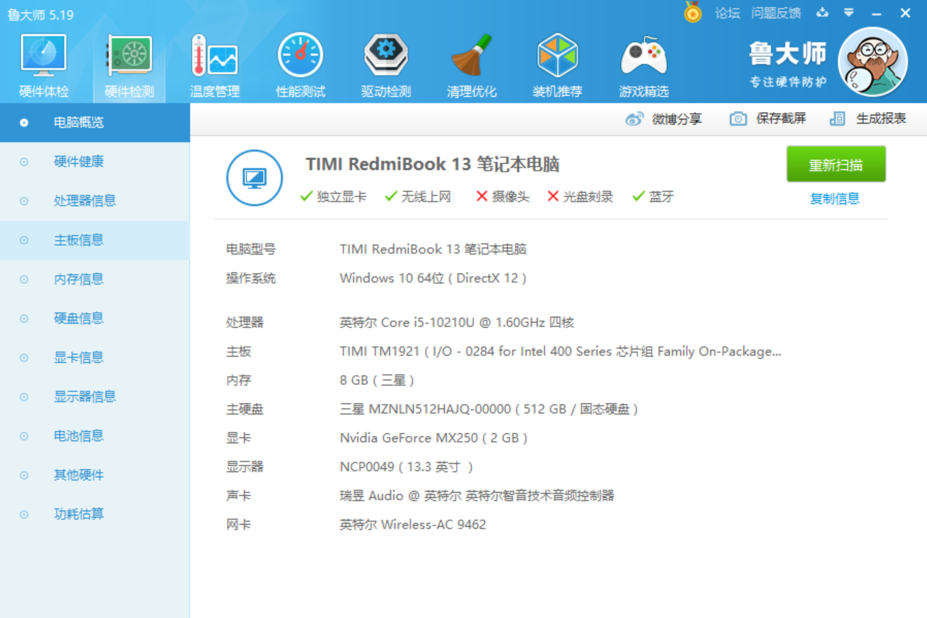 硬件方面RedmiBook13采用了英特尔第十代I5处理器,以及MX250显卡,内存则采用了8GB,不过遗憾的是内存采用了封装工艺,这意味着以后无法更换内存。