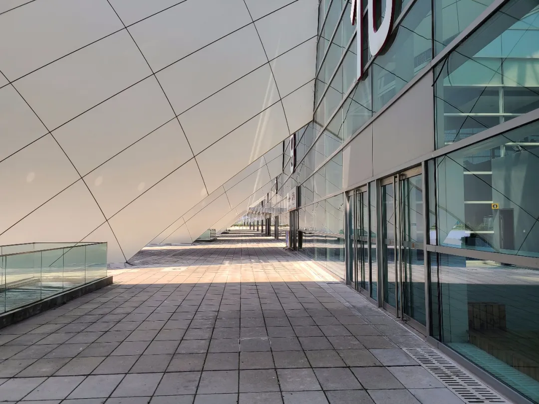 而在接近于纯色的环境下,比如逆光下的这组东方体育中心游泳馆样片,3X拍摄出的白色墙壁色彩有些偏洋红,但是并不是非常明显;天空的蓝色则保持了不错的一致性。