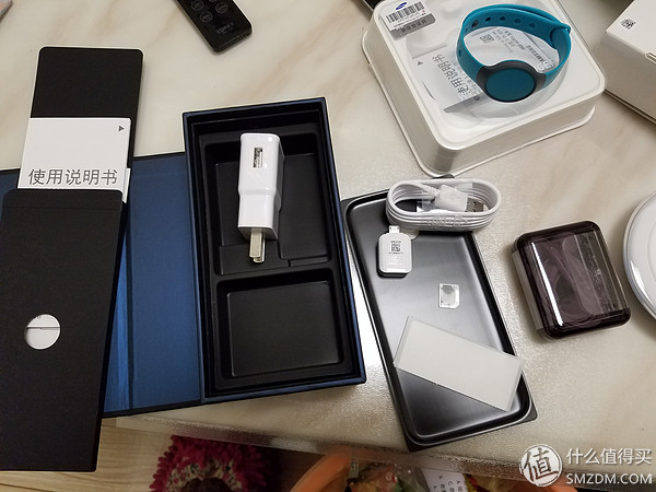这就是盒子里所有东西,包括一个无线充电器,说明书,取卡针,数据线,OTG线(S换机助手),一个盒装的耳机